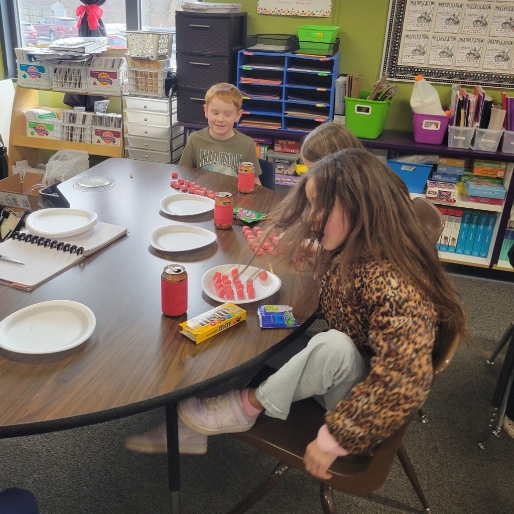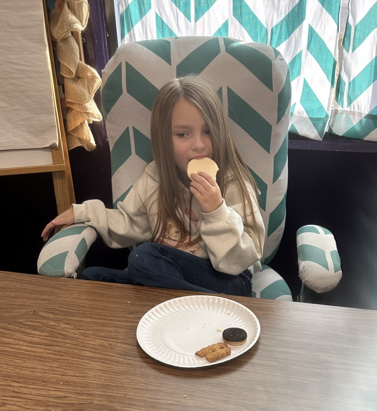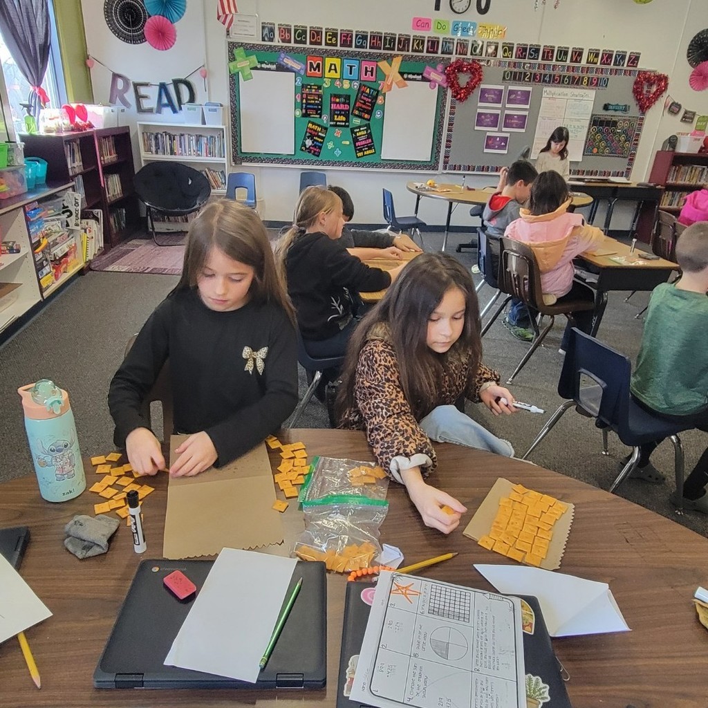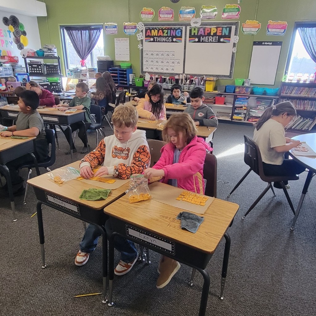 3rd grade was happy to be back at school! We learned about Groundhog Day, and spent some time outside observing our shadows. We had fun in math using Cheese-its to learn about area.