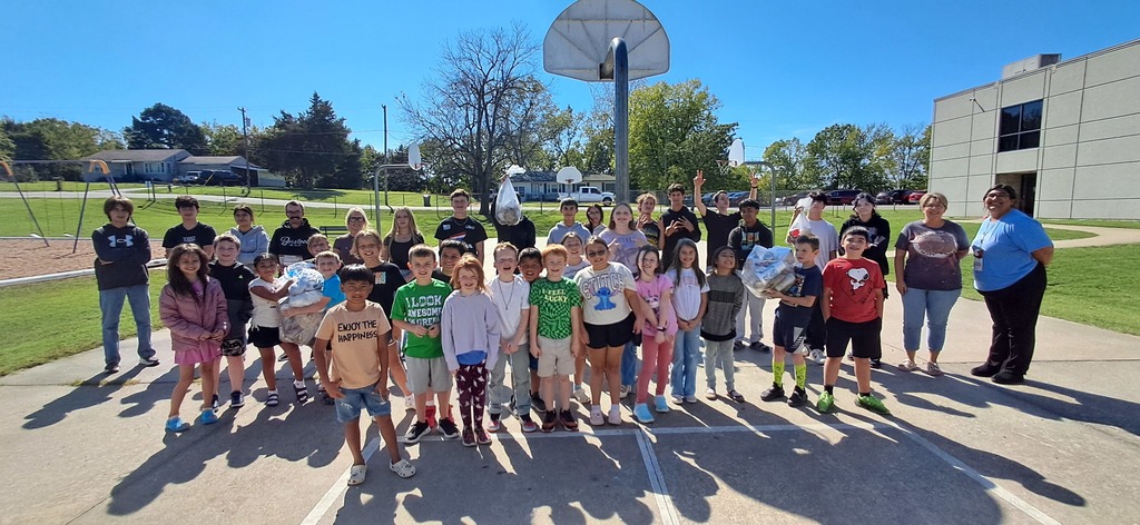 Ms. Castillo and Mrs. Phillips' 3rd graders teamed up with Ms. Metcalf and Mr. Foster's high school sophomores to compete in a trash pick up scavenger hunt!